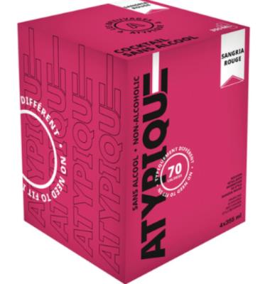 CJ5559-OU : Atypique CJ5559-OU : Breuvages - Jus - Sangria Rouge Sans Alcool ATYPIQUE, SANGRIA ROUGE sans alcool, 6 x (4 x 355ml) (ANG.)