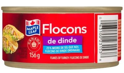 CV67 : Maple leaf CV67 : Conserves et bocaux - Viandes - Flocons De Dinde Moins Sel MAPLE LEAF , FLOCONS DE DINDE moins sel , 24 x 156g